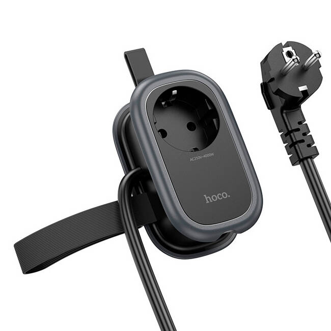 Мережевий фільтр HOCO NS6 на 1 розетку + 2 USB + USB-C, 30W, кабель 1.1м, 220В, Black, Box