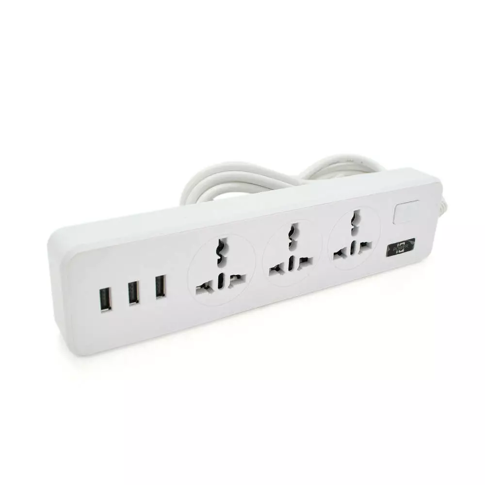 Мережевий фільтр ТВ-Т13, 3 розетки + 3 USB, 2 м, перетин 3х0,75мм, 2500W, White, Box