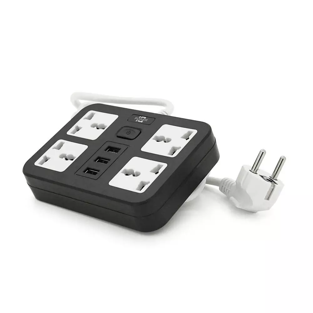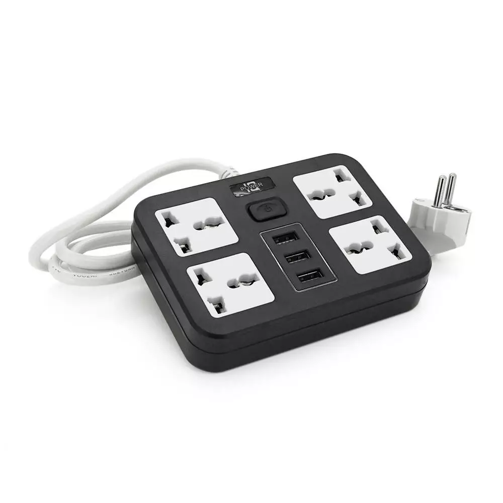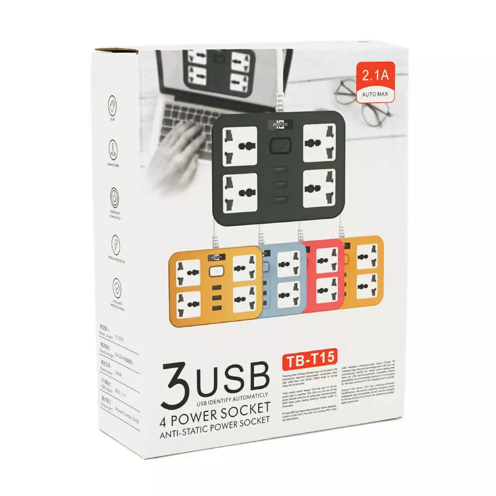 Мережевий фільтр ТВ-Т15, 4 розетки + 3 USB, 2 м, перетин 3х0, 75мм, 2500W, Black, Box