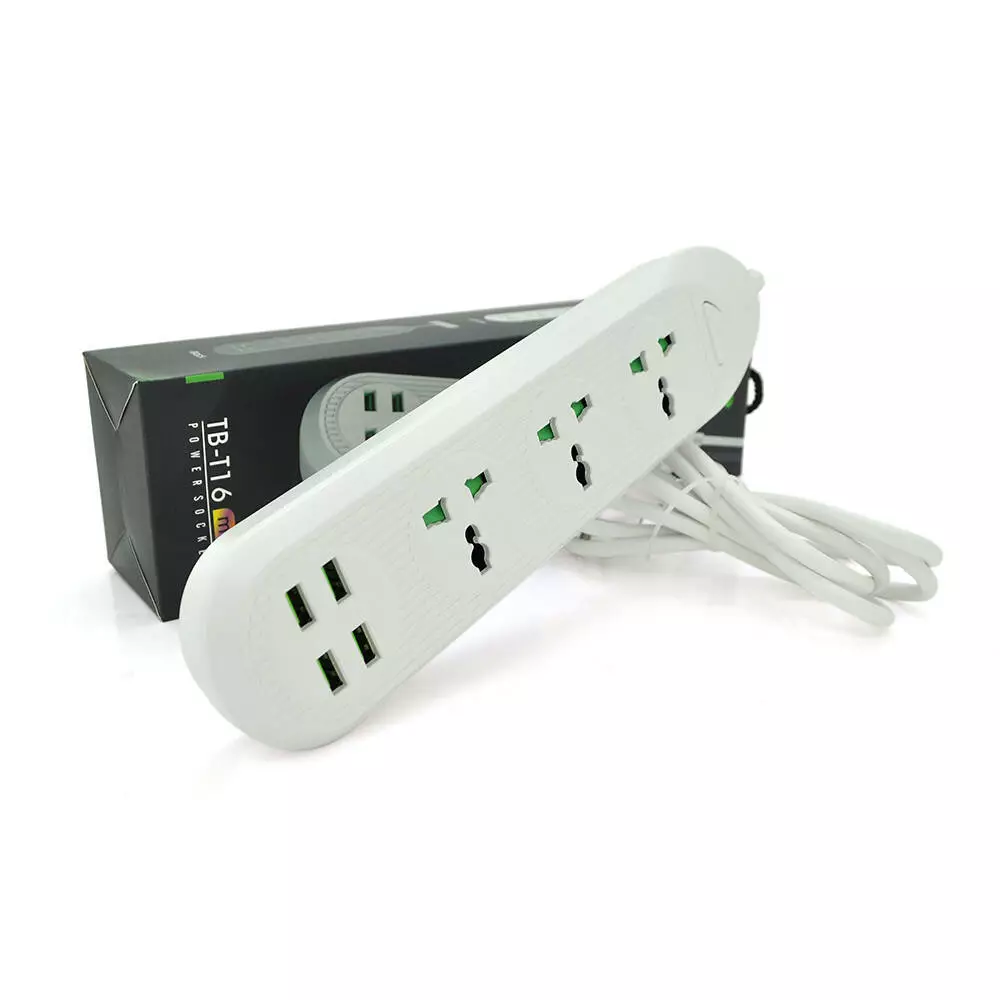 Мережевий фільтр ТВ-Т16mini, 3 розетки + 4 USB, 2 м, перетин 3х0, 75мм, 3000W, White, Box