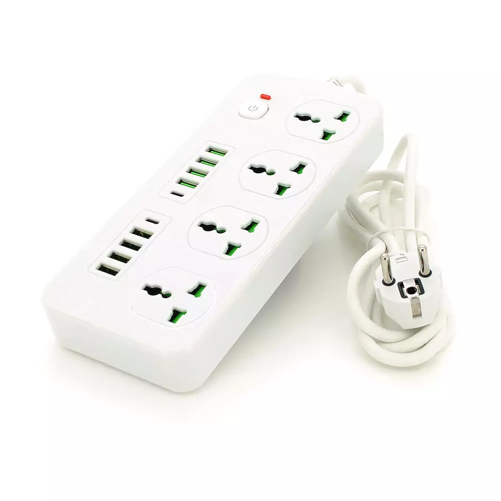 Мережевий фільтр ТВ-Т91, 4 розетки + 8 USB + 2 PD, 2 м, перетин 3х0, 75мм, 3000W, White, Box