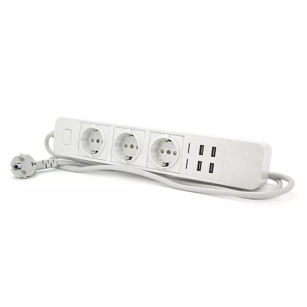 Мережевий фільтр з керуванням через WiFi, 3 Розетки + 4 USB, 2 м, перетин 3х0,75мм, Black / White, Box