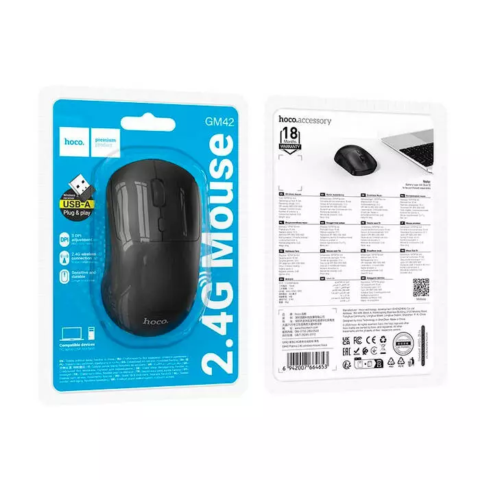 Миша бездротова HOCO GM42, 1600DPI, 2.4GHZ, Black, Blister