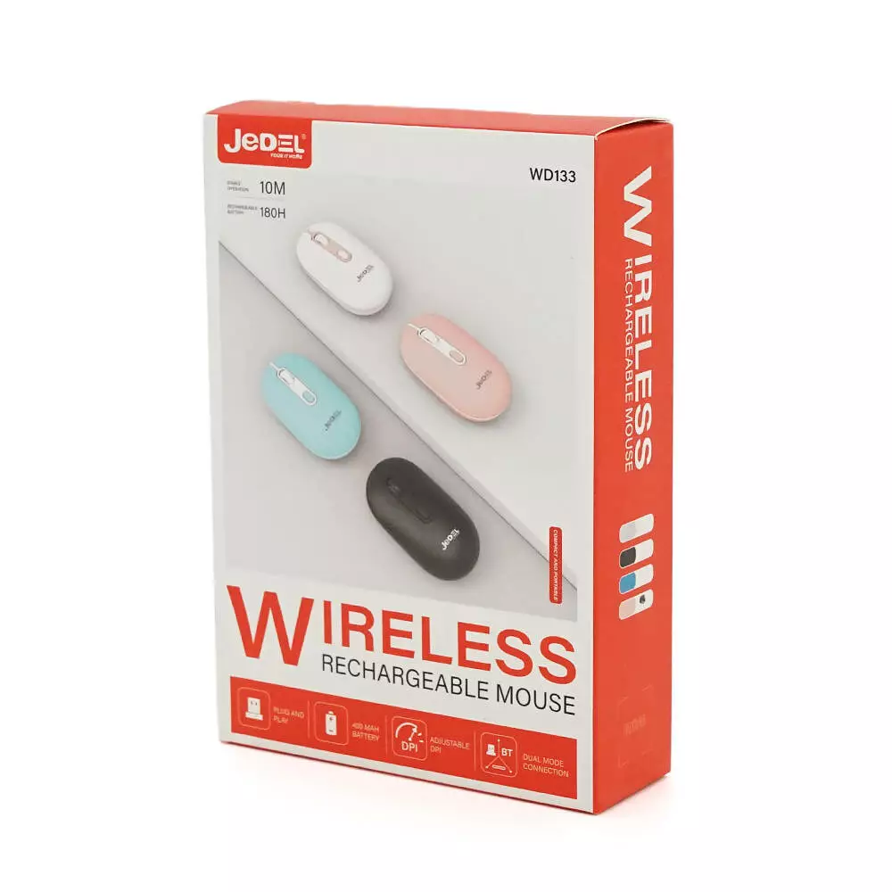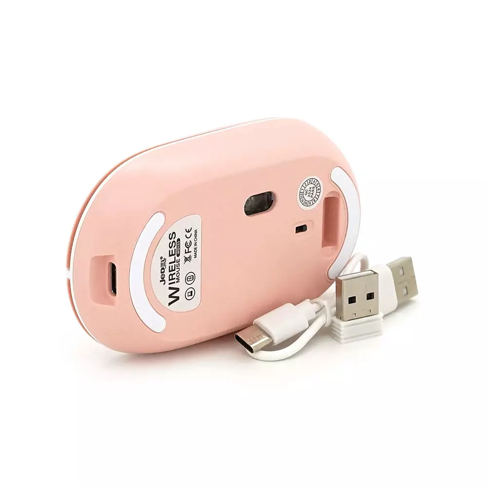 Миша бездротова JEDEL WD133, 800/1200/1600DPI, 2.4 GHz+Bluetooth 5.0, 3.7V 400mAh, Type-C заряджання. 105x60x34 мм. Pink. Box