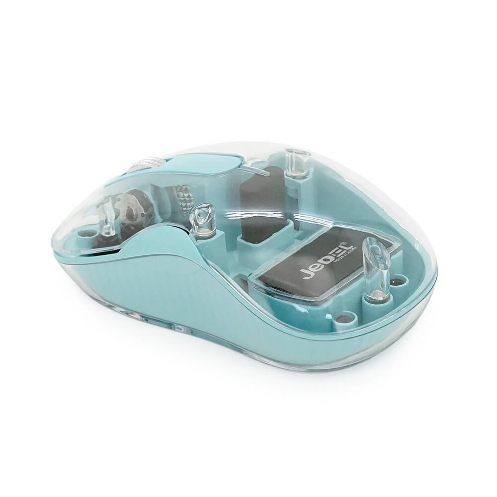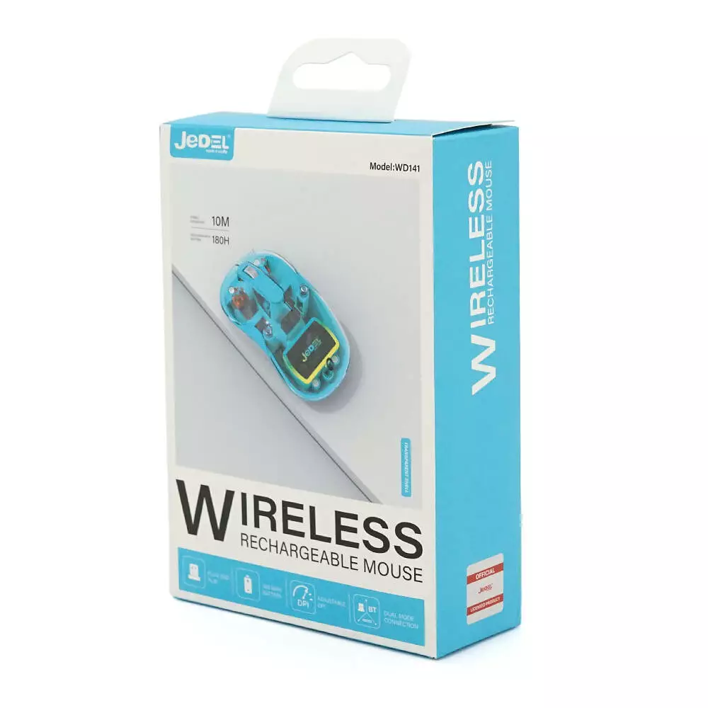 Миша бездротова JEDEL WD141T-Bl, 1200, 2.4 GHz+Bluetooth 5.0, 3.7V 300mAh, Type-C заряджання. 109x60x32 мм. 69 р. Transparent-Blue, Box