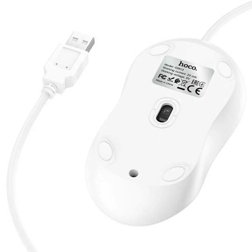 Опис: Миша провідна HOCO GM13W, 1000DPI, білого кольору, в