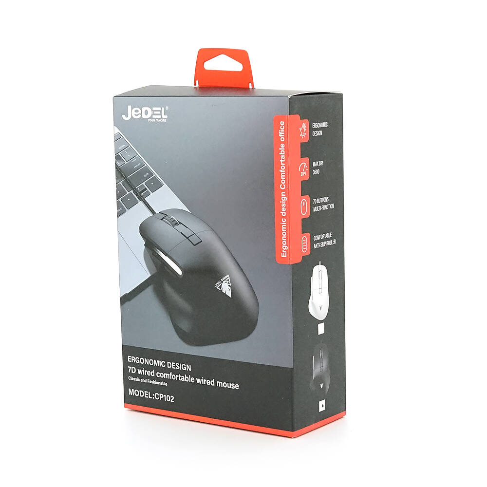 Миша провідна JEDEL CP102, 1200/1800/2400/3600DPI, кабель 1,5 м. 127x83x63 мм. 135 гр. Black. Box