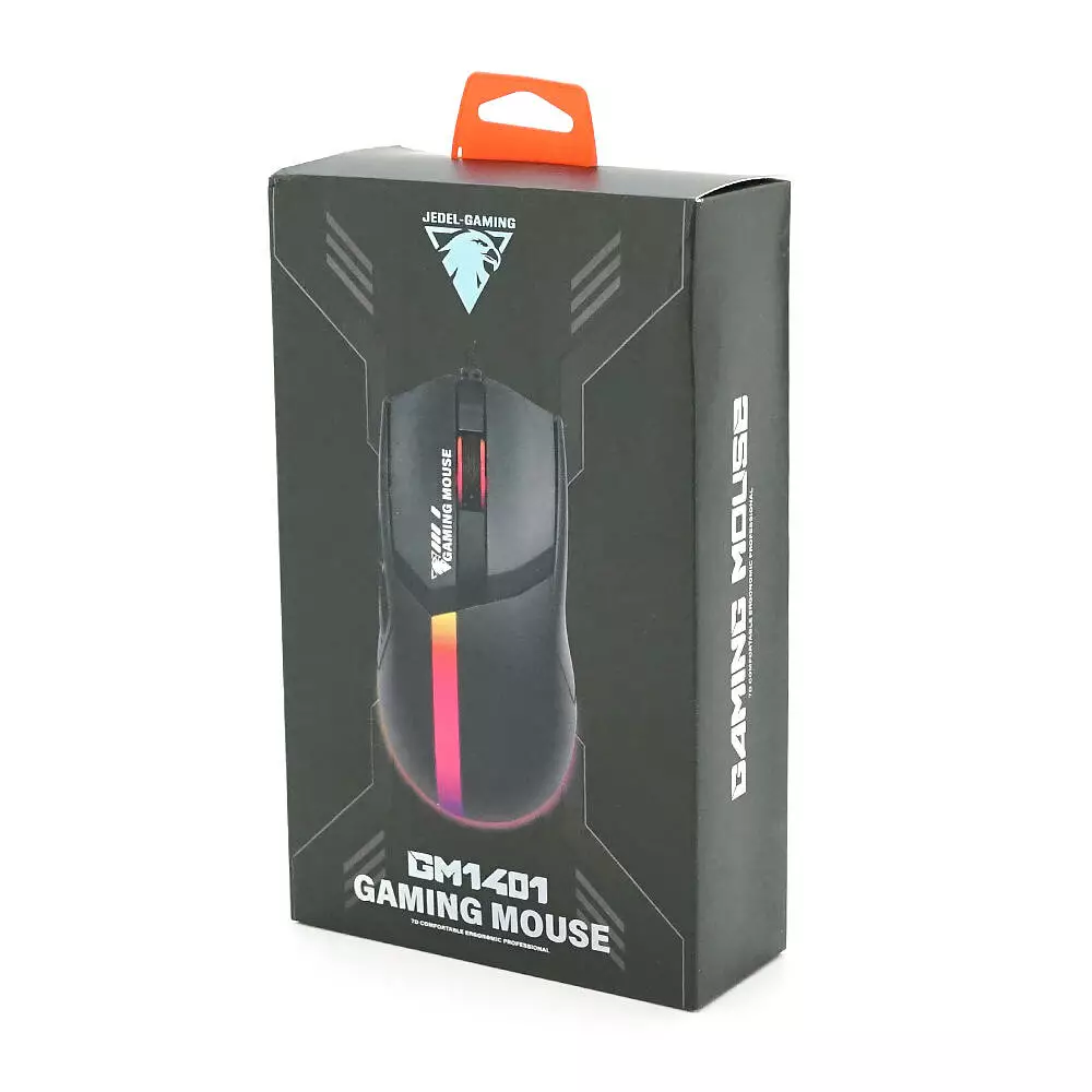Миша провідна JEDEL GM1401, 7 кнопок, 1000/2000/3200/5600/7600/12400DPI, кабель 1,5 м. RGB підсвічування. Black. Box