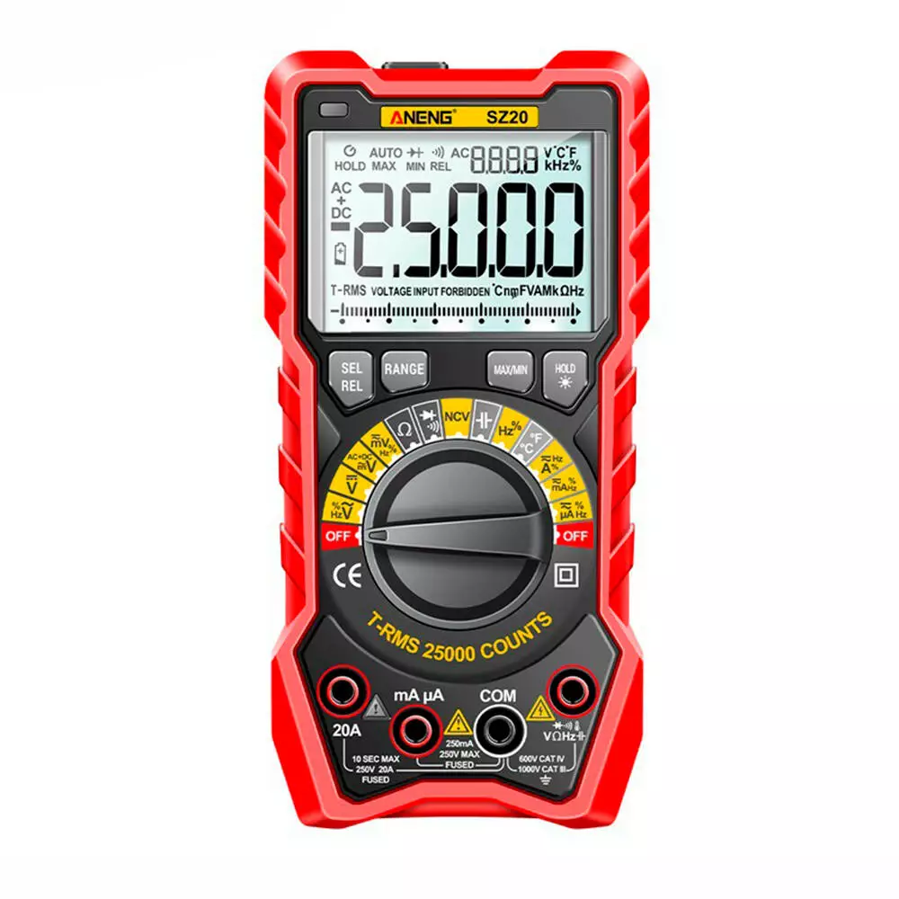 Мультиметр ANENG AN-SZ20, вимірювання: V, A, R, C, T, F (SP)