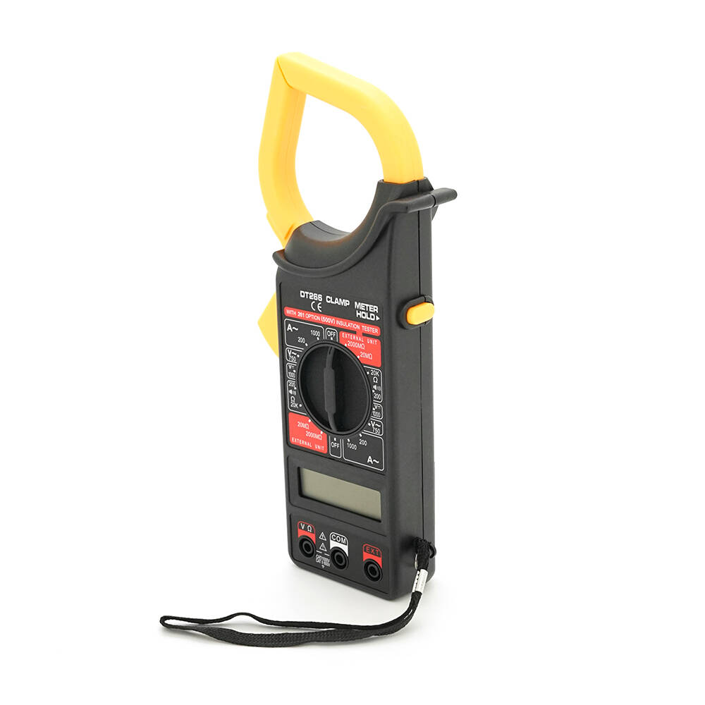 Мультиметр-кліщі DT-266. Вимірювання: V, A, Ω. Функції: продзвонювання, утримання даних (HOLD), захист від навантаження. Габарити: 230 70 37 мм. Вага: 250 г
