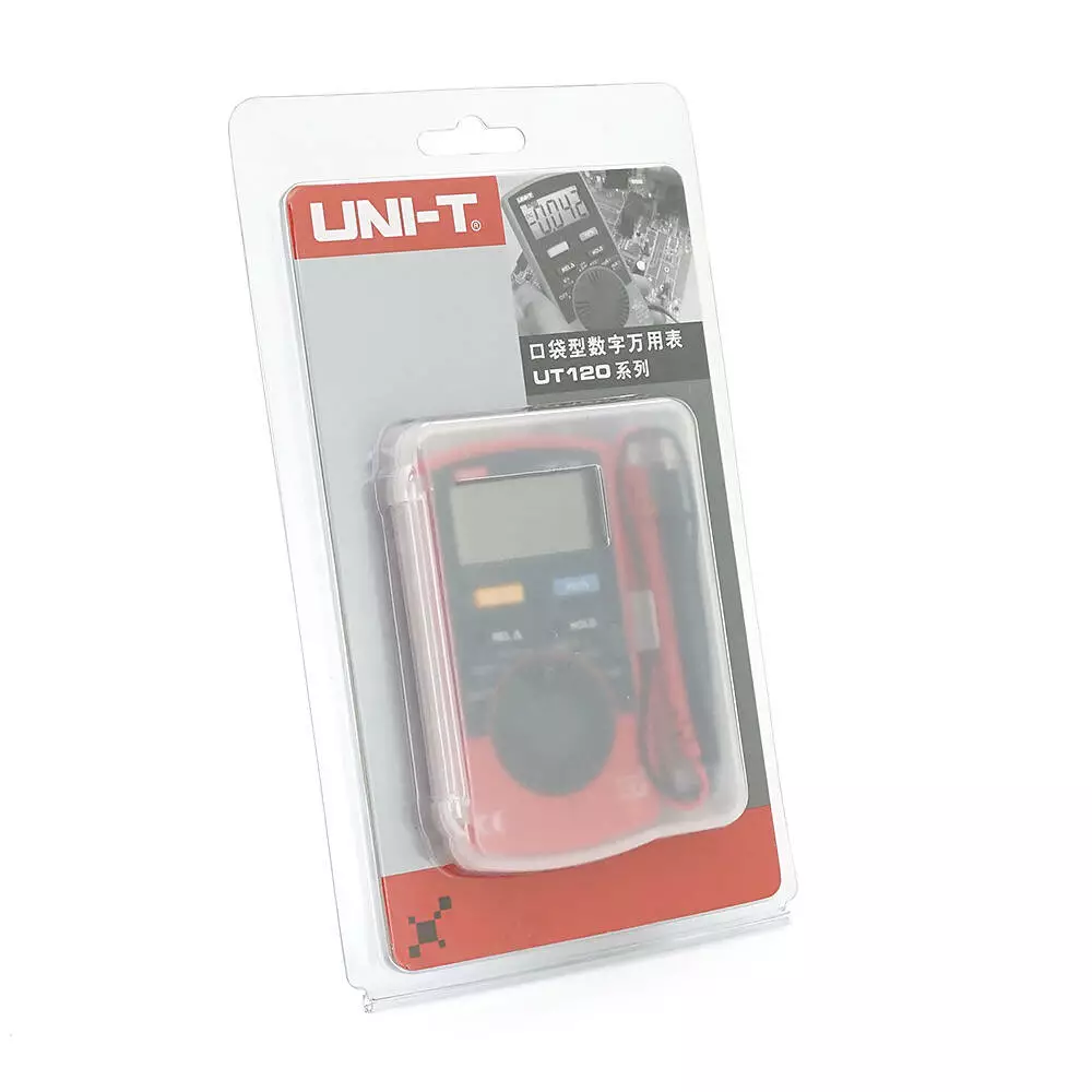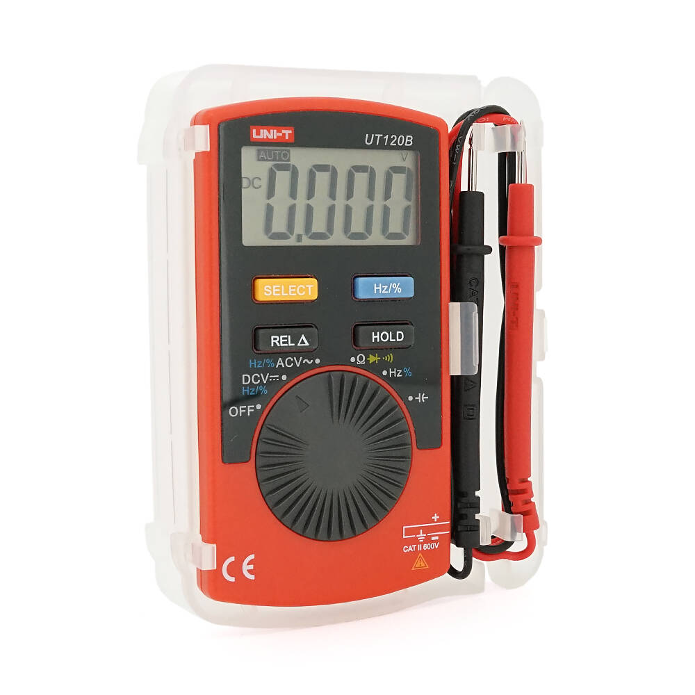 Мультиметр UNI-T UT120B: вимірювання V A Ω C Hz °C. Функції True RMS продзвінку тест діодів перевірка транзисторів. Габарити 110×58×11 мм