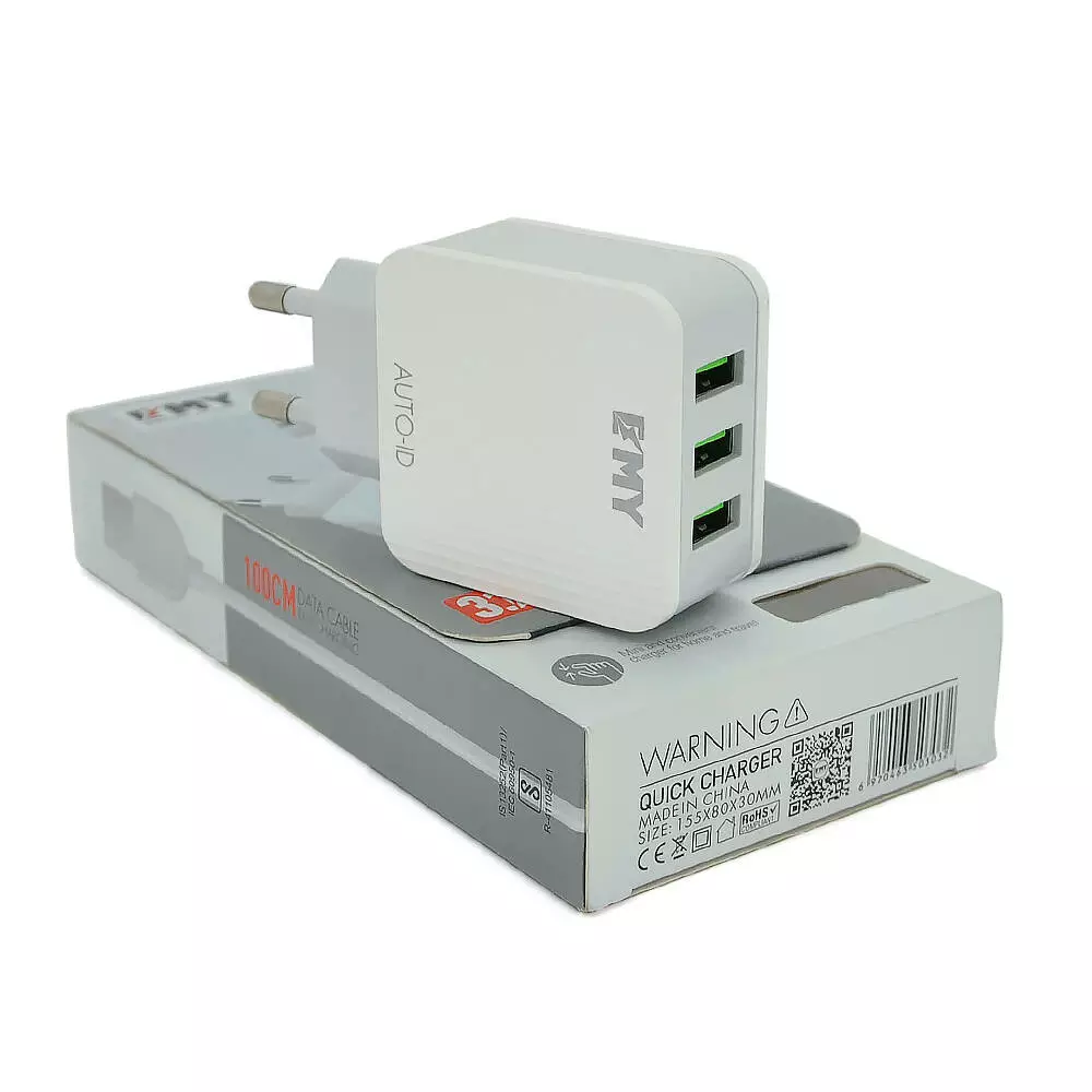 Набір 2 в 1 СЗУ With Iphone Cable 110-240V MY-A303, 3 x USB, 5V/15W, Output: 5V/3.1A, White, Box, Q25