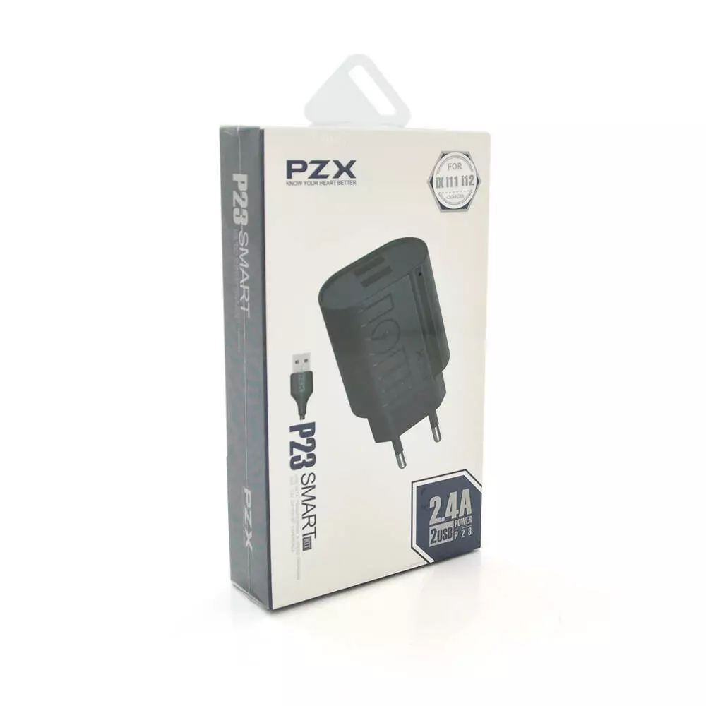 Набір 2 в 1 СЗУ With iPhone Cable 110-240V PZX P23, 2xUSB, 2,4A, Black, Blister-box