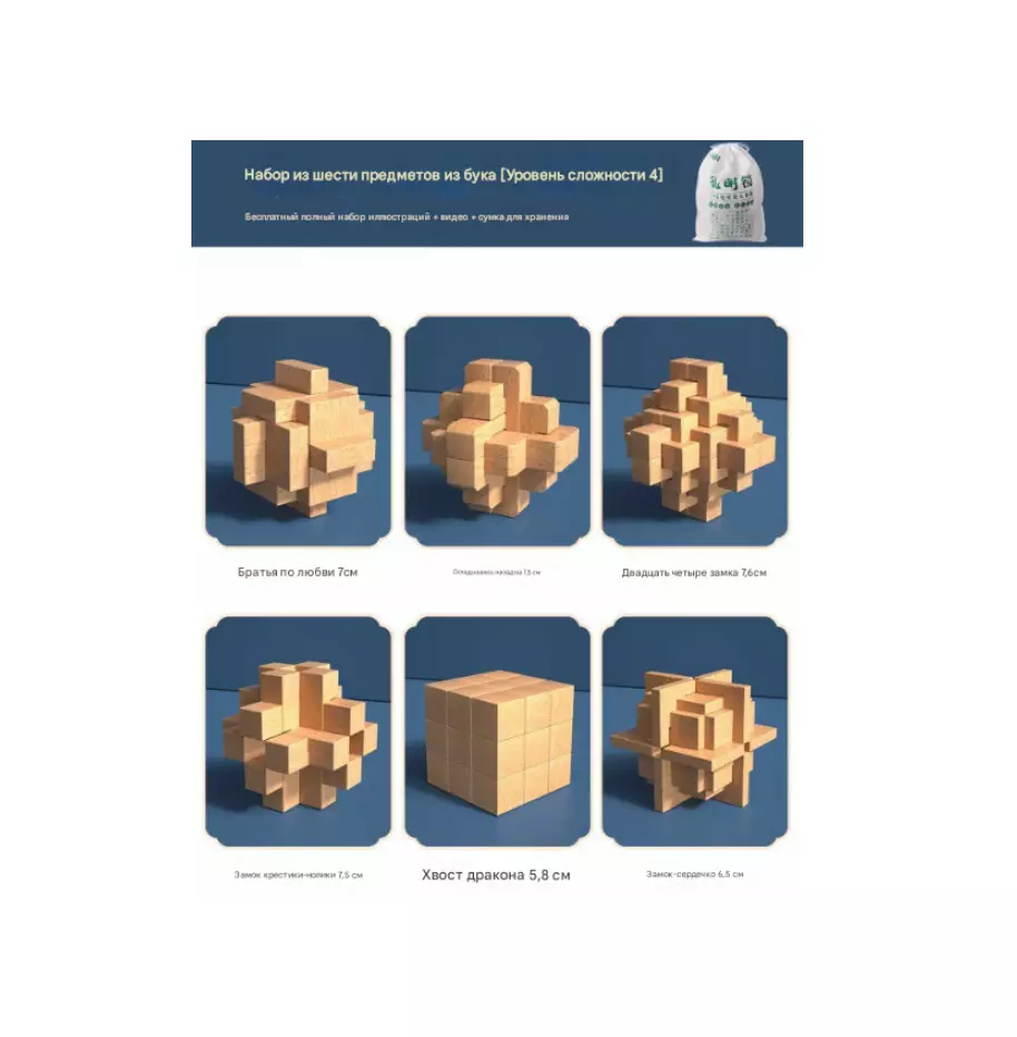 головоломок, виконаних із натурального дерева. Кожен елемент набору