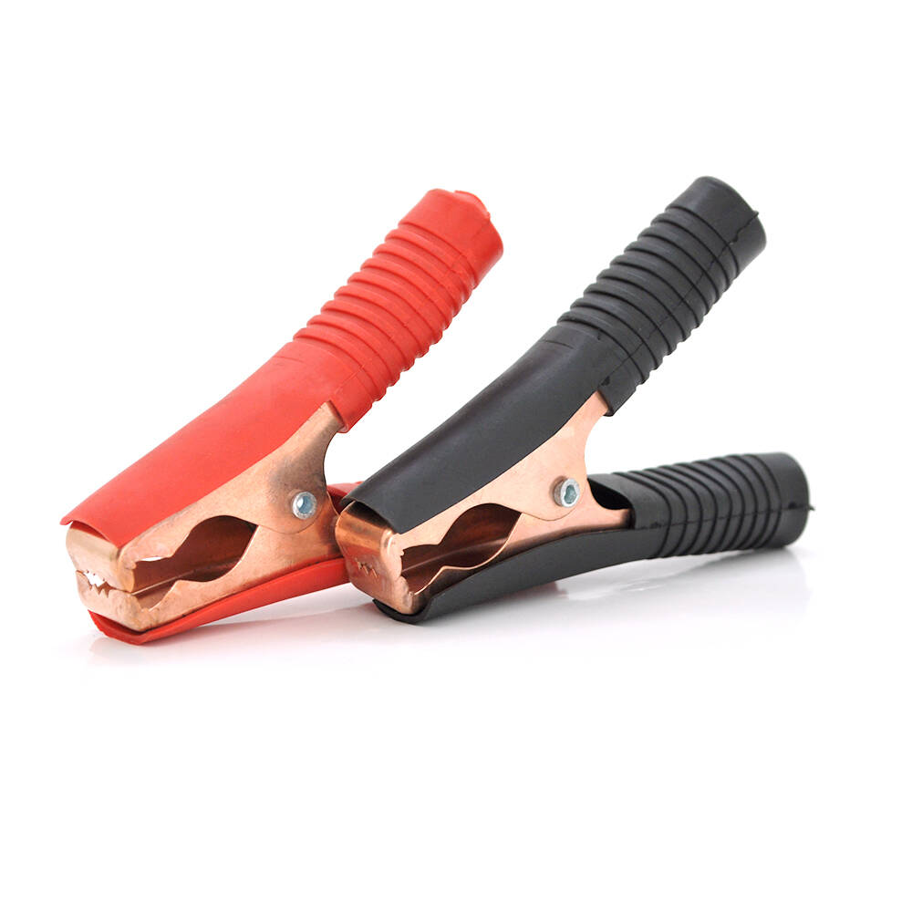 Набір акумуляторних затискачів "крокодили" Merlion чорний + червоний 100А 90мм (щільний гумовий, рифлений кожух), з мідним покриттям, Пакет, Q2
