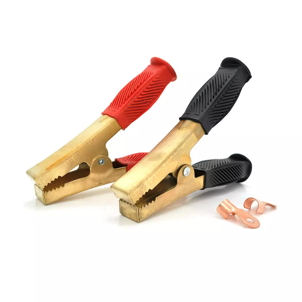 Ці затискачі використовуються для підключення клем акумуляторів або інших електричних пристроїв. Їх мідне покриття забезпечує надійне з'єднання та захист від корозії, а гумовий кожух запобігає випадковим коротким замиканням і забезпечує безпеку при використанні.