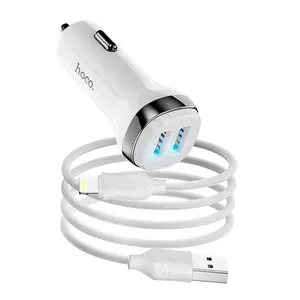 Набір АЗУ 12-24V HOCO Z40 + кабель Lighting, 2xUSB, 2.4A, кабель 1м, White, Box