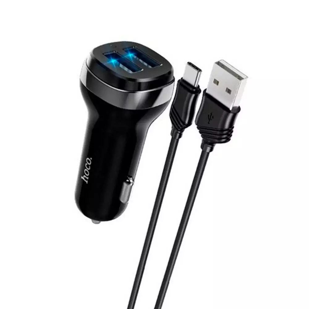 Набір АЗУ 12-24V HOCO Z40+ кабель Type-C, 2xUSB, 2.4A, кабель 1м, Black, Box