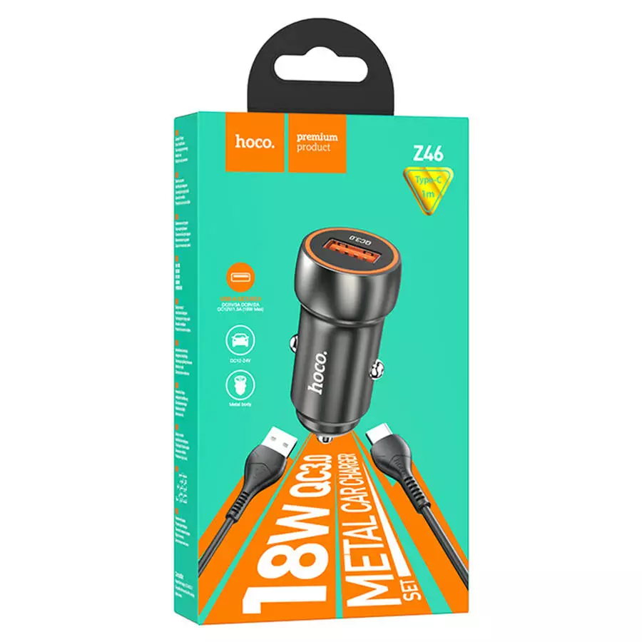 HOCO Z46 підтримує технологію швидкого заряджання Quick Charge 3.0, завдяки чому сумісні пристрої заряджаються значно швидше, ніж від звичайних адаптерів. Компактний металевий корпус не займає багато місця та гармонійно вписується в інтер'єр автомобіля.