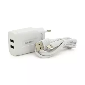 Набір BOROFONE BA37A СЗУ 2xUSB+ кабель Lighting, 2.4A, 1м, White, Box
