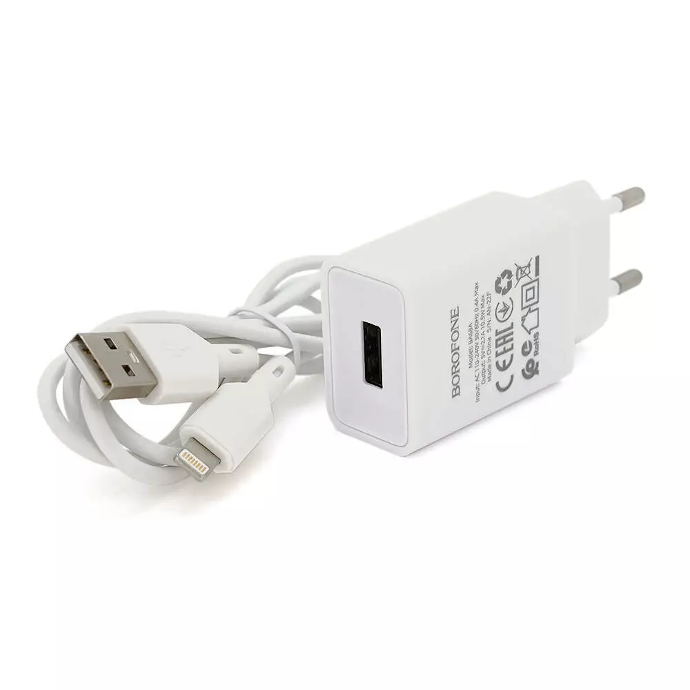 Набір BOROFONE BA68A СЗУ 1xUSB+ кабель Lighting, 2.1A, 1м, White, Blister