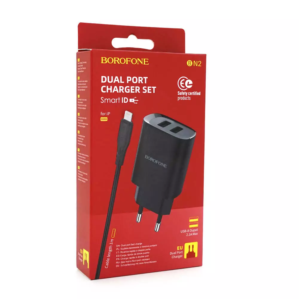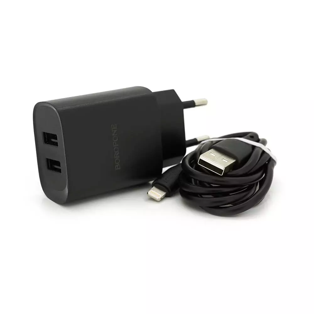 Набір BOROFONE BN2 СЗУ 2xUSB+ кабель Lighting, 2.1A, 1м, Black, Box