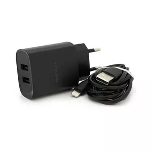 Цей набір включає мережний зарядний пристрій з двома портами USB і кабель Lightning. СЗУ підтримує вихідний струм до 2.1A кожному порту, що забезпечує швидку зарядку пристроїв. Кабель Lightning довжиною 1 метр також підтримує струм до 2.1A і призначений для заряджання та синхронізації сумісних пристроїв Apple. Упаковка в коробці забезпечує безпеку та зручність при транспортуванні та зберіганні.