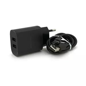 Цей набір включає мережний зарядний пристрій з двома портами USB і кабель Type-C. СЗУ підтримує вихідний струм до 2.1A кожному порту, що забезпечує швидку зарядку пристроїв. Кабель Type-C довжиною 1 метр також підтримує струм до 2.1A і призначений для заряджання та синхронізації сумісних пристроїв із роз'ємом Type-C. Упаковка в коробці забезпечує безпеку та зручність при транспортуванні та зберіганні.
