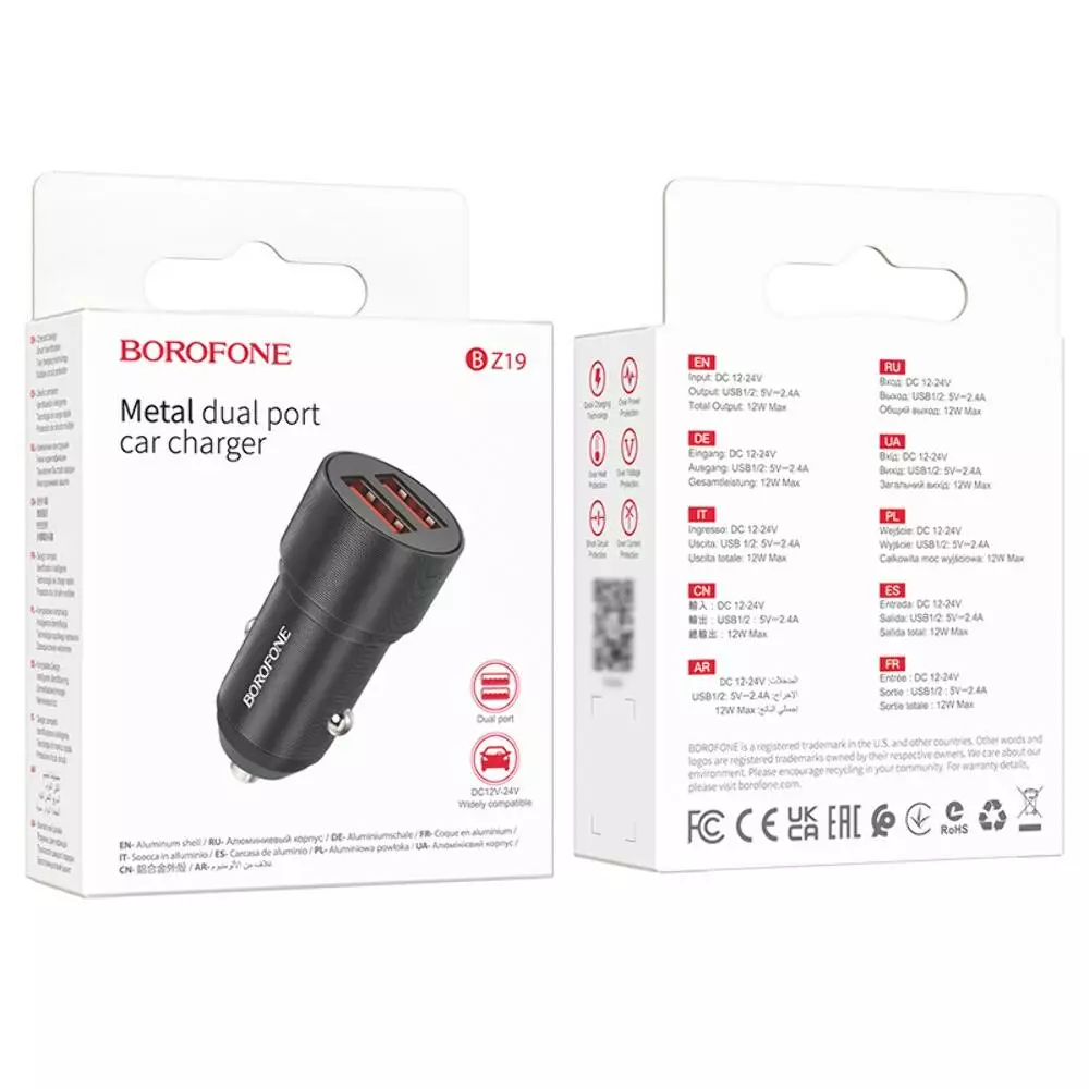 Зарядний пристрій BOROFONE BZ19 USB поєднує компактність, надійність і високу швидкість заряджання, що робить його зручним аксесуаром для повсякденного використання в автомобілі.