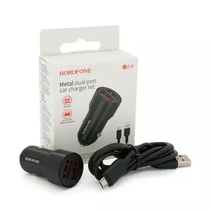Набір BOROFONE BZ19A АЗУ 2xUSB+ кабель Micro є набір для зарядки пристроїв. В комплект входить автомобільний зарядний пристрій із двома USB-портами та кабель Micro USB довжиною 1 метр. Виріб виконаний у чорному кольорі та поставляється в коробці.