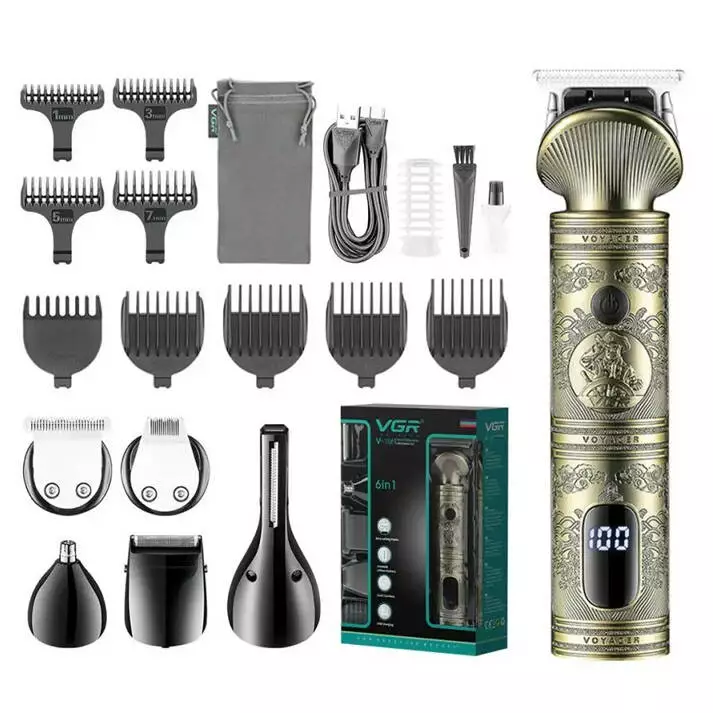 Набір для стрижки VGR 6 в 1 V-106, 14 насадок, LED display, Box