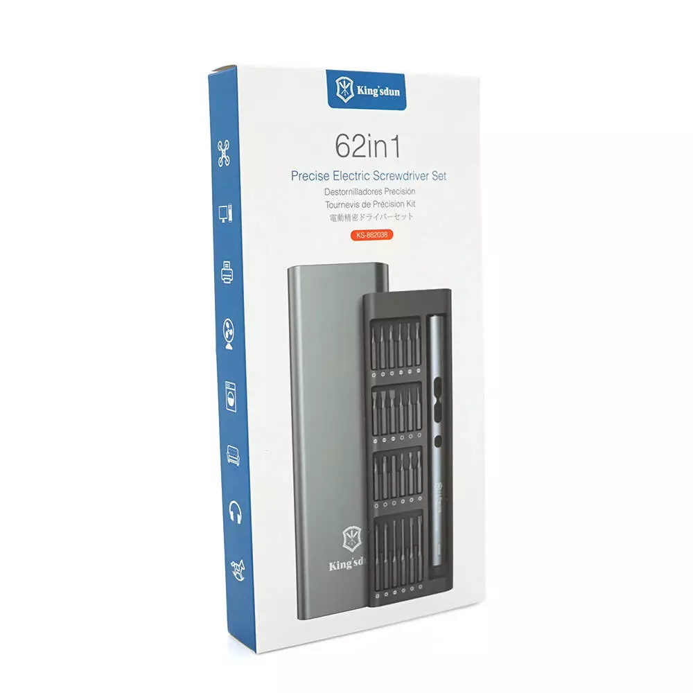 Набір електричної викрутки + біти 62-in-1, довжина тримача інструменту 120 мм, біти T3 магнітна, алюміній, Box