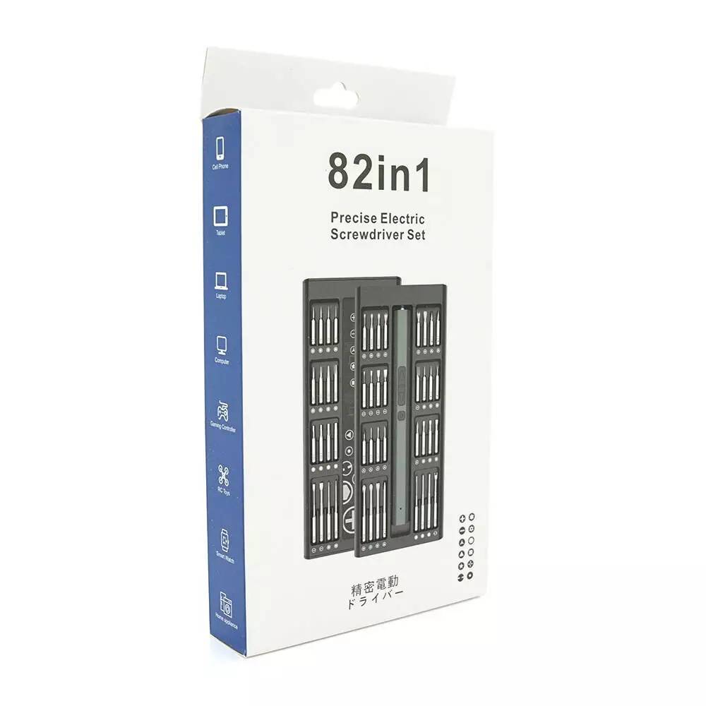 Цей набір включає електричну викрутку і 82-в-1 біти. Довжина