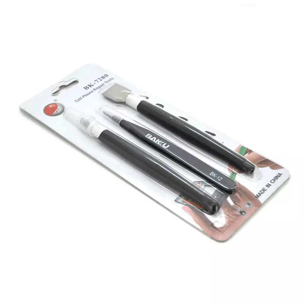 Набір інструментів BAKKU BK-7280-A (шпателечок, прямий пінцет, скальпель). Blister