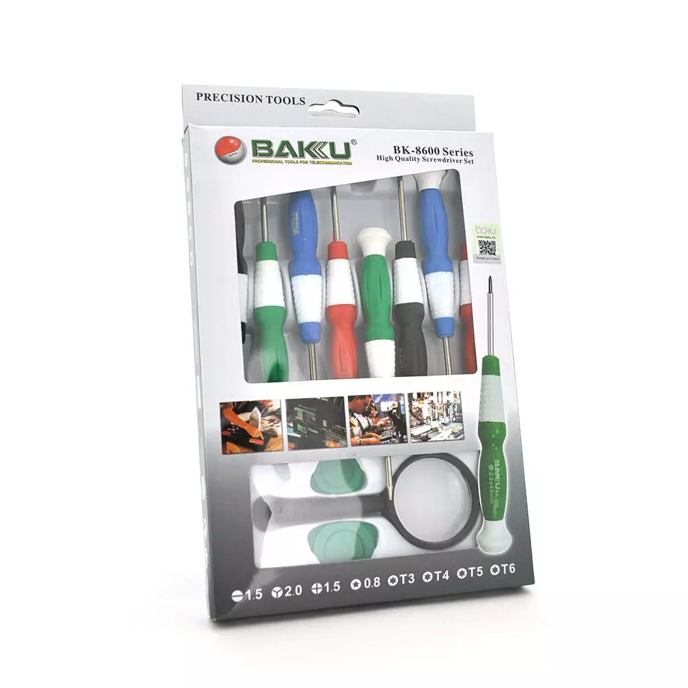 Набір інструментів BAKKU BK8600 (Викрутки: T3, T4, T5, T6, "мерс" 2.0, + 1.5, -1.5, * 1.5, 2 медіатора і лупа), Blister-box