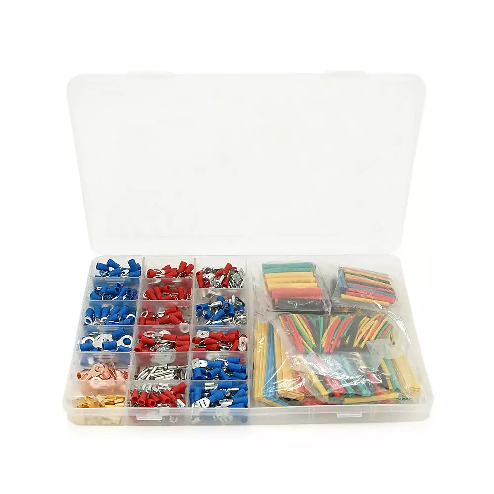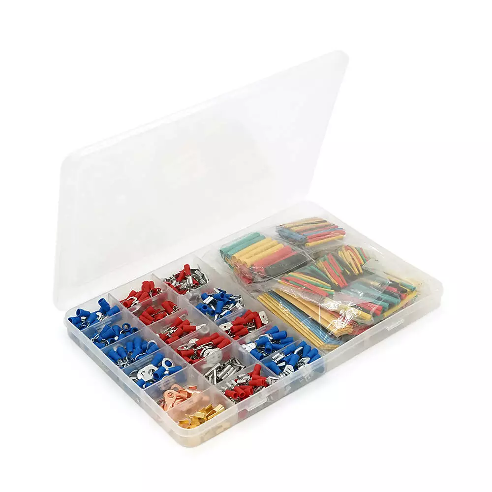 Набір клем холодного пресування в боксі, з набором термозбіжних кольорових трубок, 678шт.