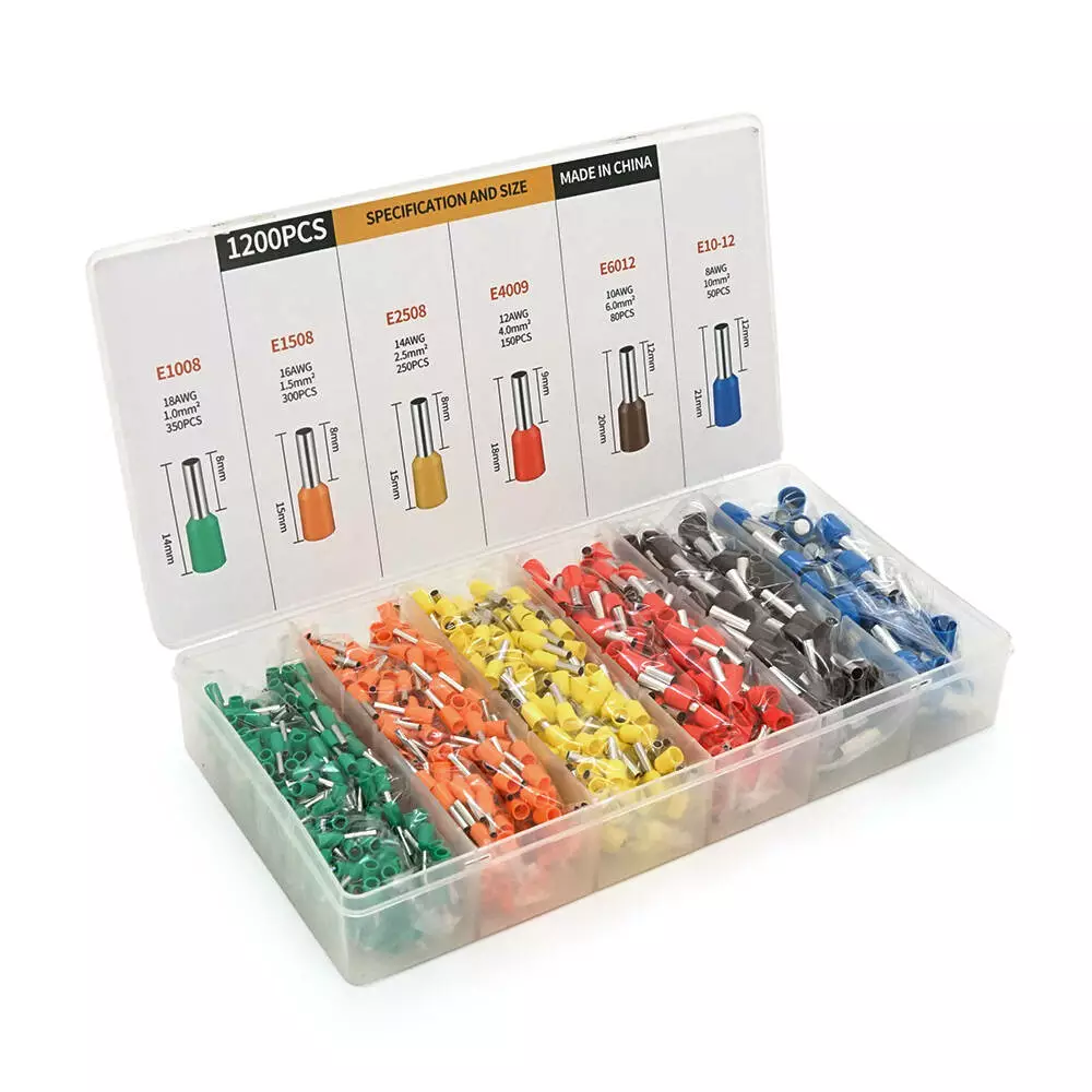 Набір клем/наконечників 1180шт(E2508y-250,E1008g-350,E1508o-300,E4009r-150,E1012b-50,E6012gr-80)у боксі