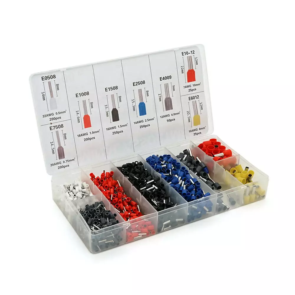 Набір клем/наконечників 1200шт (E0508w-200, E7508g-200, E1008r-200, E1508bl-250, E2508b-250, E4009g-50, E6012y-25, E1012r-25) в боксі