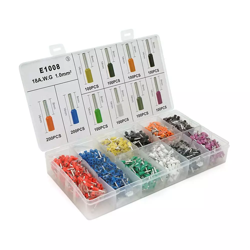 Набір клем/наконечників 1200шт E1008 (R-200, B-200, Y-100, Bl-100, O-100, Br-100, G-100, W-100, Gr-100, V-100) в боксі