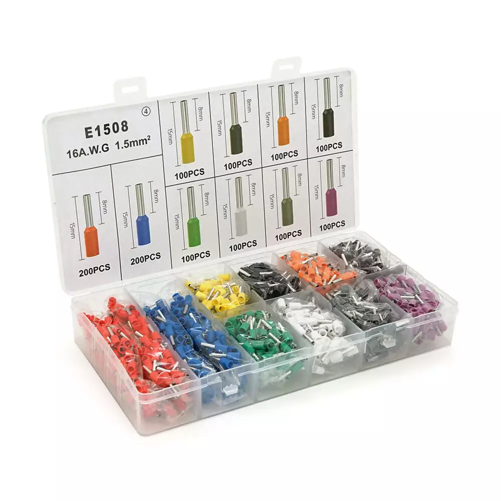 Набір клем/наконечників 1200шт VE1508 (R-200, B-200, Y-100, Bl-100, O-100, P-100, G-100, W-100, Gr-100, V-100) у боксі