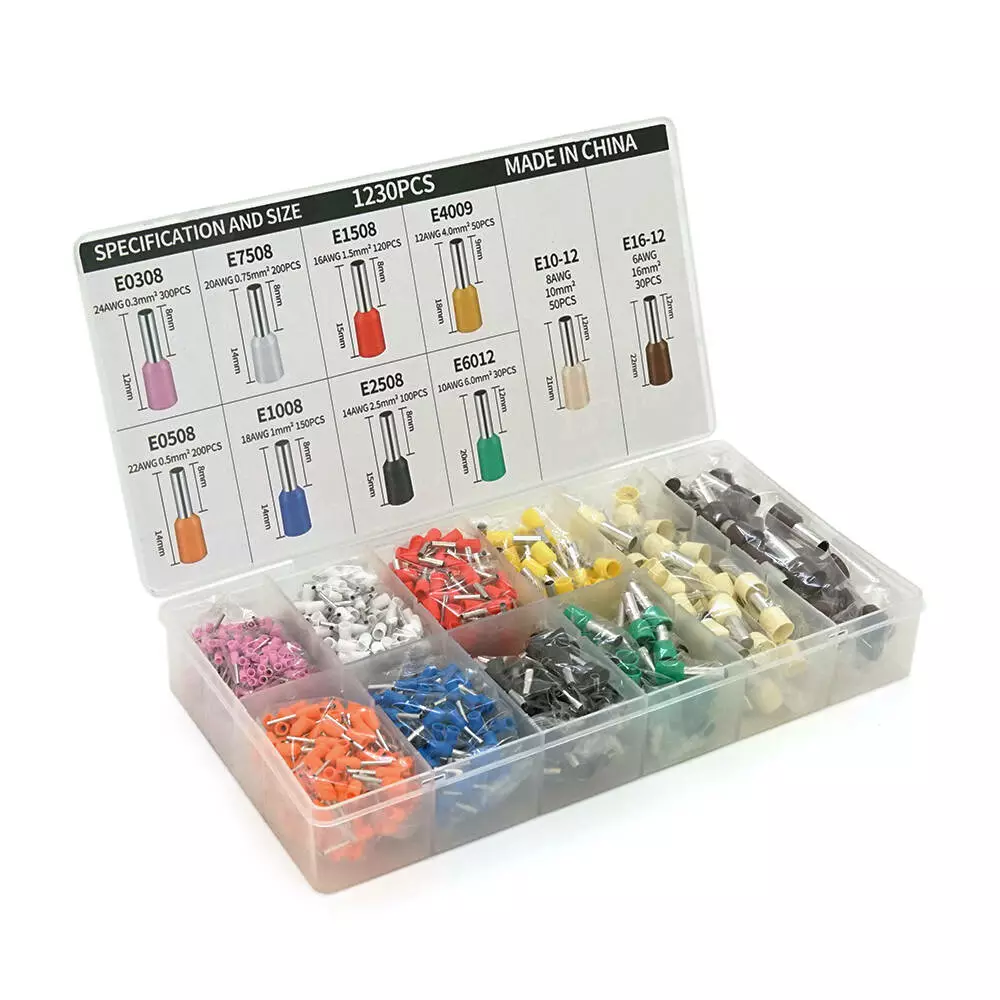 Набір клем/наконечників 1230шт(E0308v-300,E0508o-200,E2508bl-100,E1008b-150,E1508r-120,E4009gr-100,E7508w-200,E6012g-30,E1012br-50,E1612p-30)у боксі