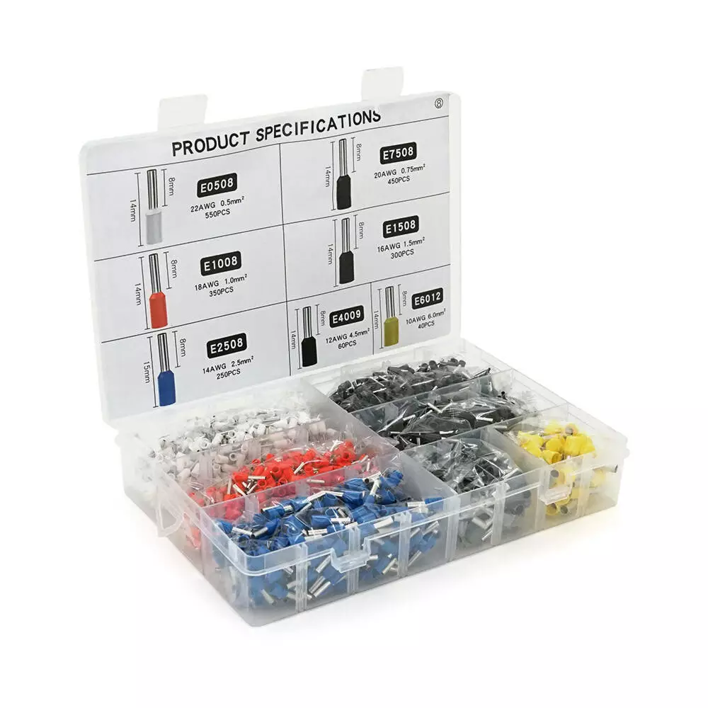 Набір клем/наконечників 2000/24шт (E0508w-550 E2508b-250,E1008r-350,E1508bl-300,E4009gr-60,E7508gr-450,E6012y-40) у боксі