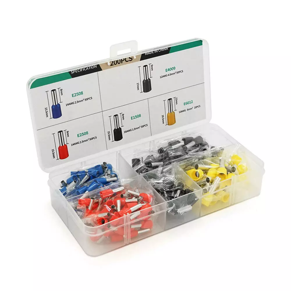 Набір клем/наконечників 200шт(E4009gr-50,E2508r+b-50/2,E1508bl-30,E6012y-20)у боксі