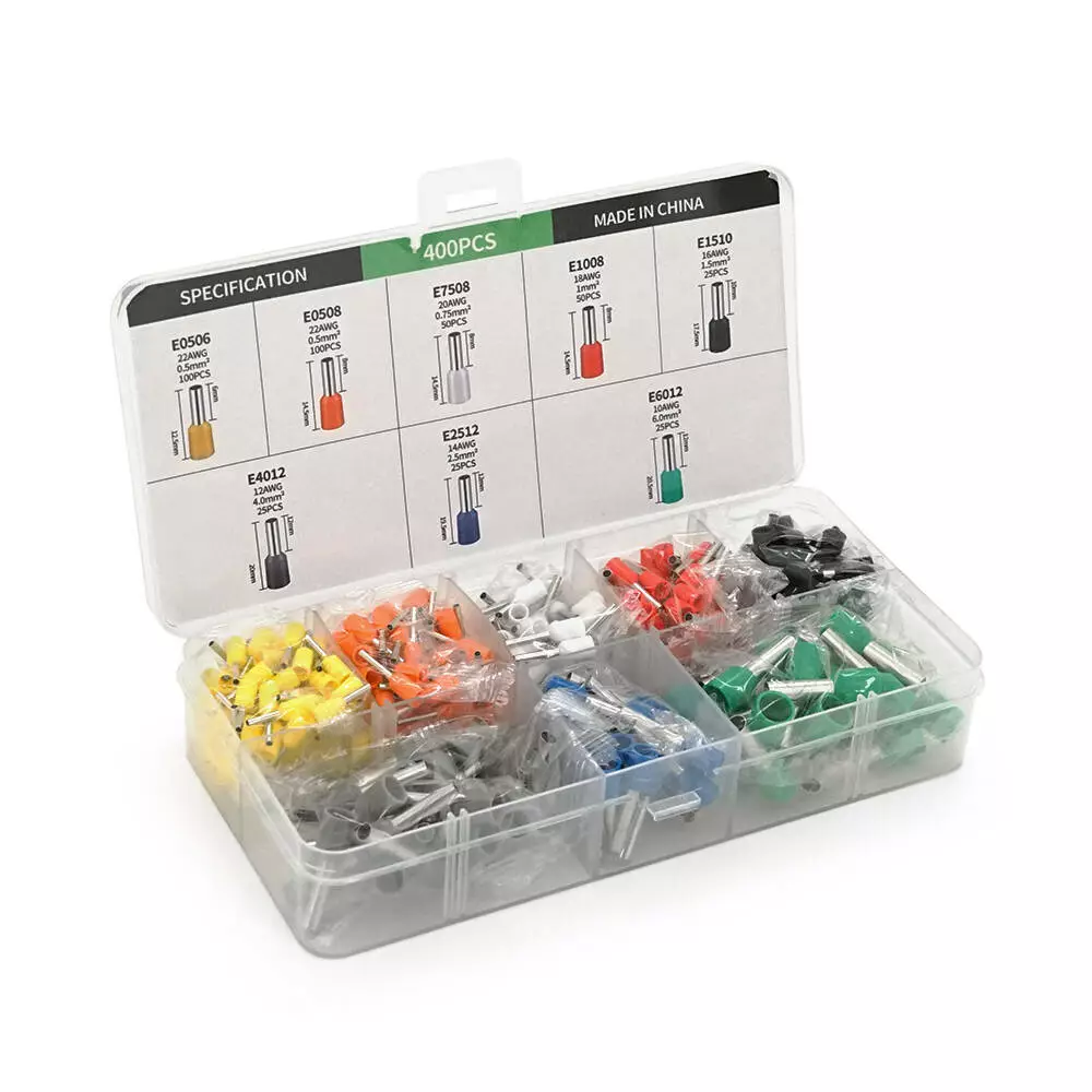 Набір клем/наконечників 400шт(E0506y-100.E0508o-100.E2512b-25,E1008r-50,E1510bl-25,E4012gr-25,E7508wr-50,E6012g-25) у боксі