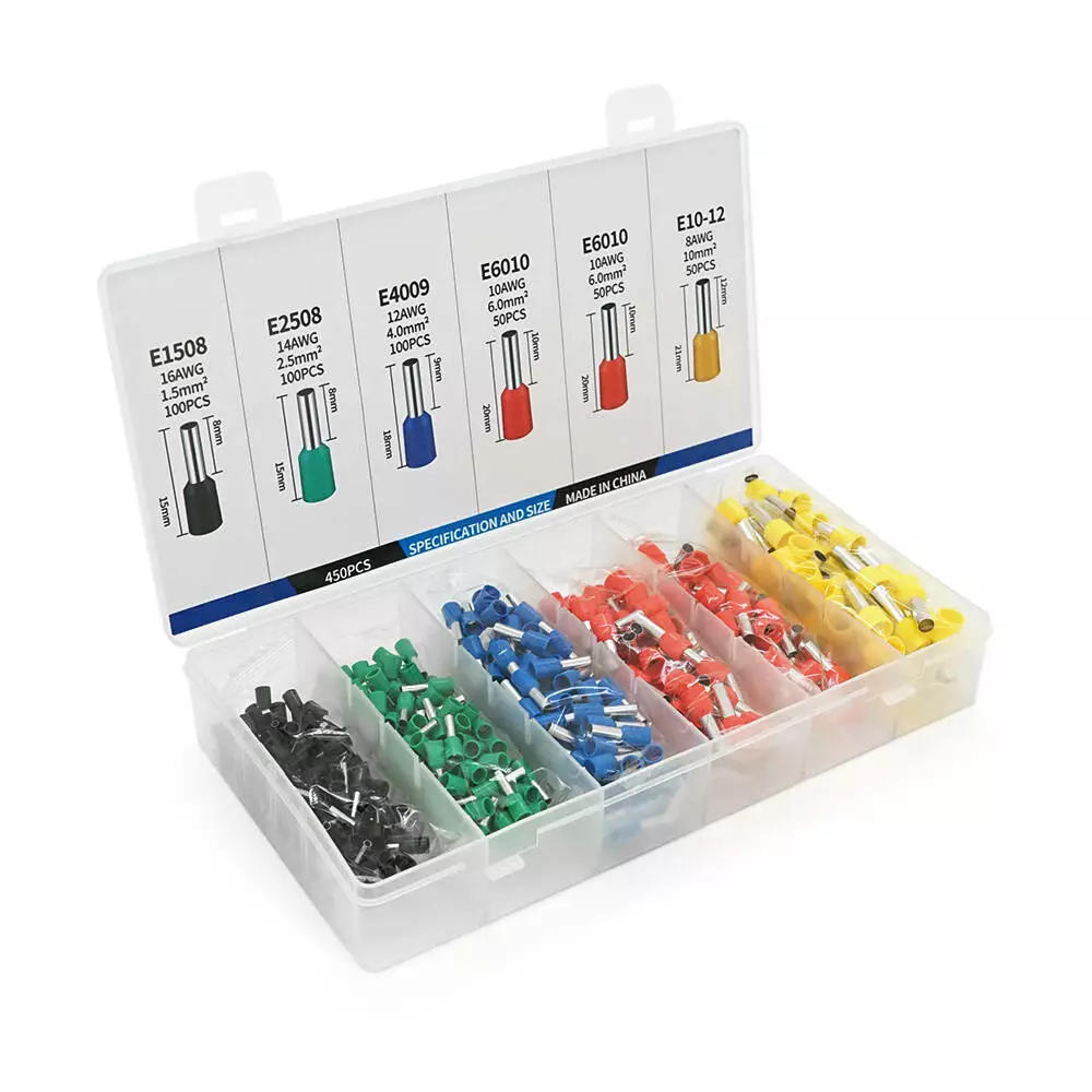 Набір клем/наконечників 450шт(E2508g-100,E1508bl-100,E4009b-100,E6010r-100,E1012y-50)в боксі