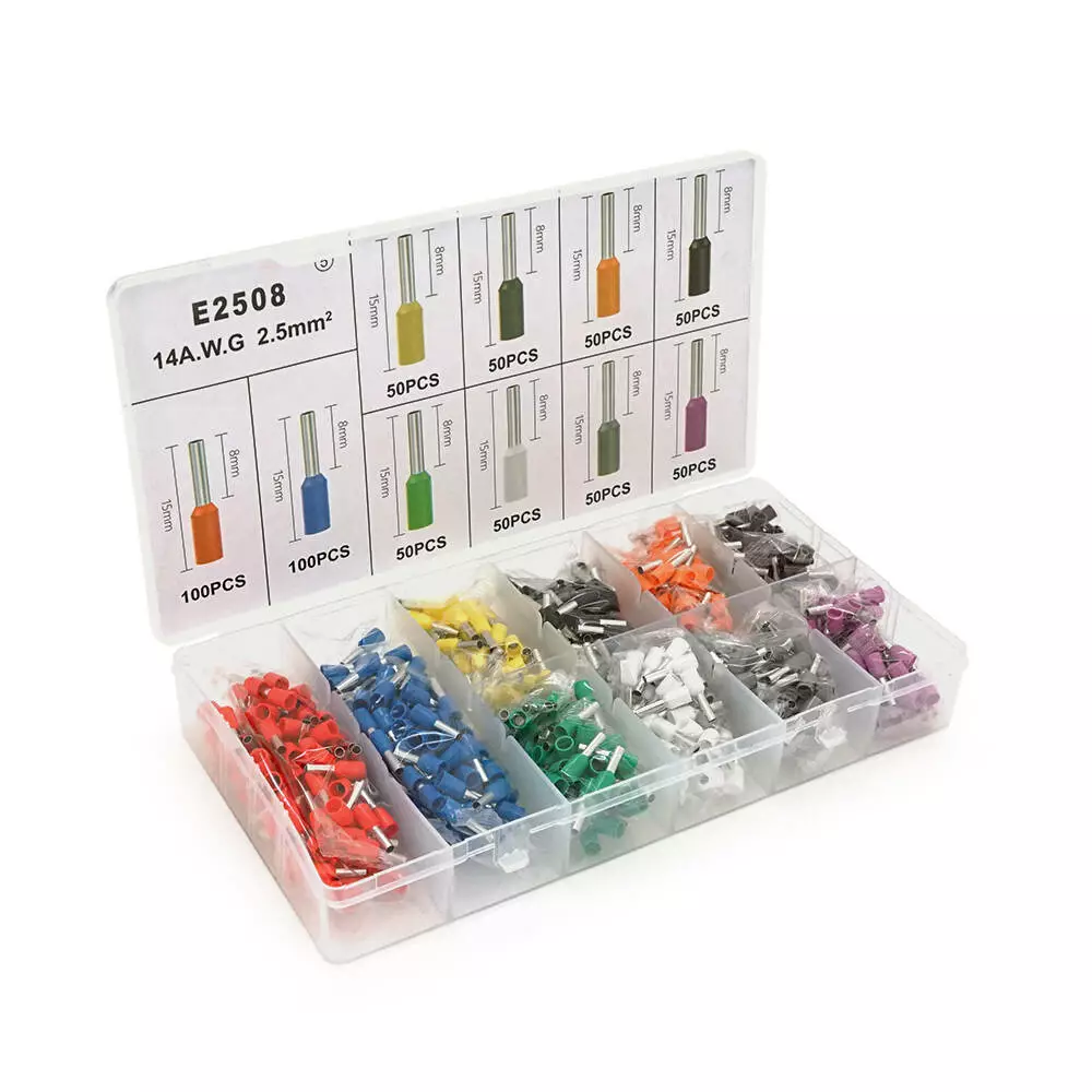 Набір клем/наконечників 600шт VE2508 (R-100, B-100, Y-50, Bl-50, O-50, P-50, G-50, W-50, Gr-50, V-50) боксі