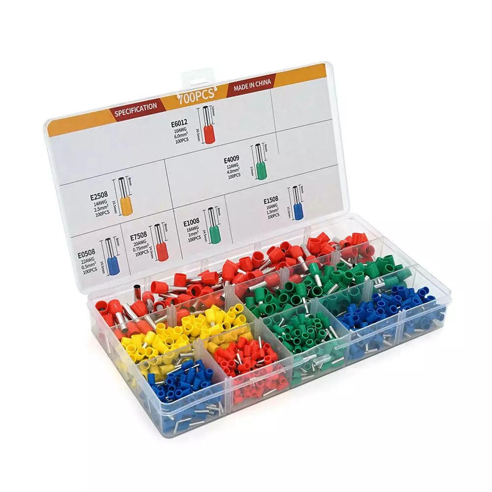 Набір клем/наконечників 700шт(E2508y-100,E1008g-100,E1508b-100,E4009g-100,E1008g-100,E6012r-100.E7508r-100.E0508b-100))в боксі
