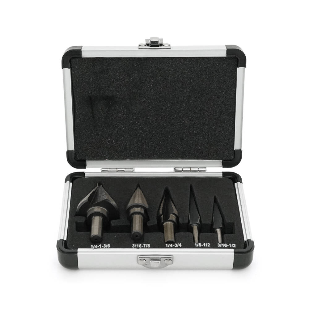 Набір свердел YOSO ступінчастих, крокових HSS 1/4-1-3/8”; 3/16-7/8”; 1/4-3/4”; 1/8-1/2”; 3/16-1/2”, металевий кейс