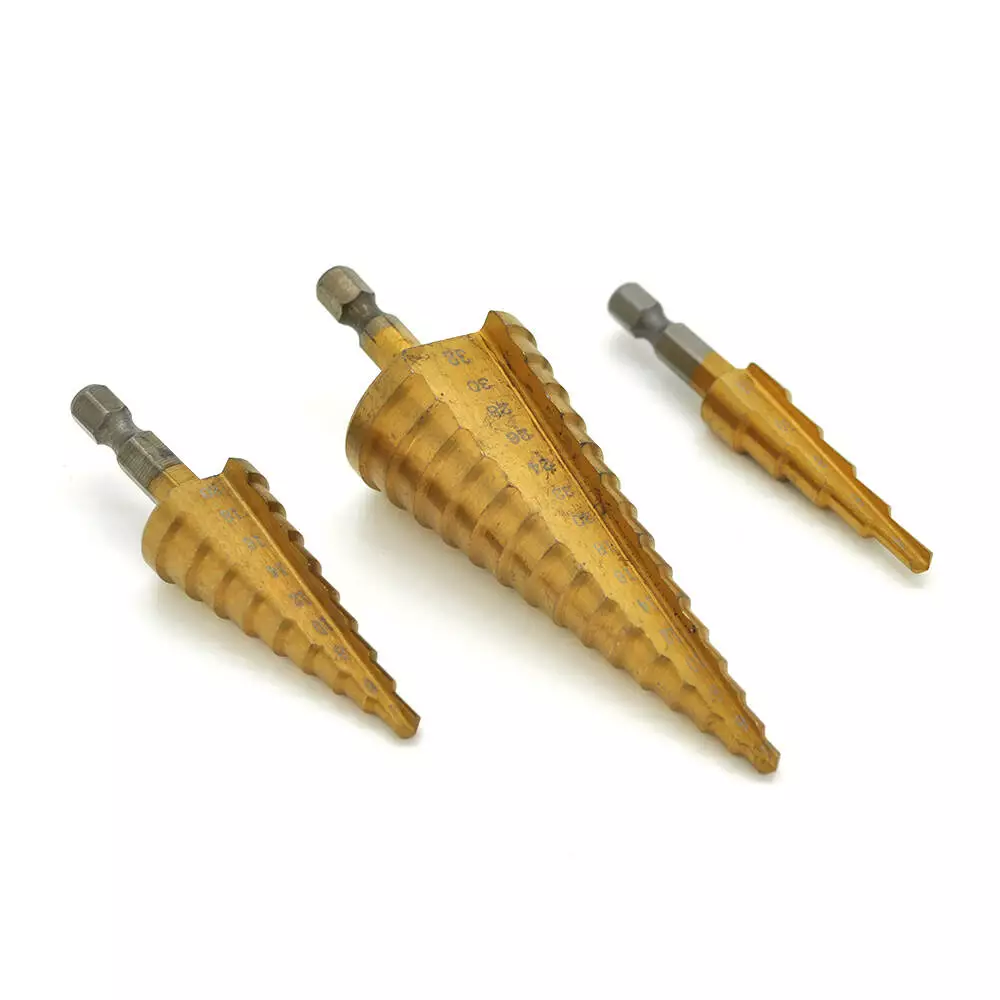 Свердла мають конічну форму, з діаметром, що збільшується, на 2 мм за крок. Ріжучі кромки зі швидкорізальної сталі (HSS) ефективно справляються зі своєю роботою і довго залишаються гострими. За потреби свердла можна заточити.