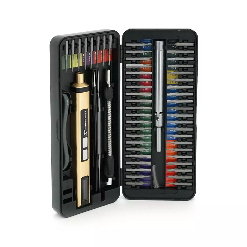 Набір SW-80022 Електро викрутка + біти 50 + лопатка + пінцет + подовжувач, довжина тримача 115 мм, біти S2 магнітна, алюміній, USB кабель, 460 грам, Case